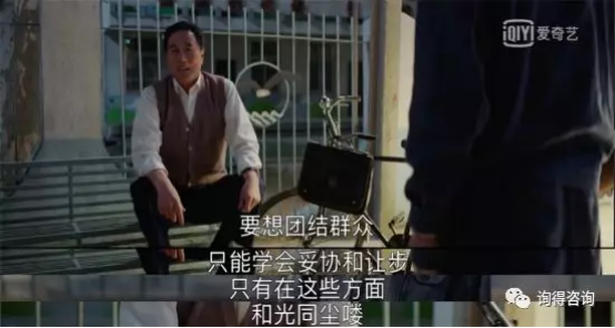 剧情演到这里,水书记引用了一(yi)个(ge)词(ci)语叫-和光(guang)同(tong)尘,这个(ge)词(ci)来自《老(lao)子》:“和其(qi)光(guang),同(tong)其(qi)尘。”这是(shi)一(yi)种处世态度(du),入世之法,并非同(tong)流合污(wu),是(shi)有「和其(qi)光(guang),同(tong)其(qi)尘」之心灵;对别人要有宽恕(shu)之量,对谤语要有(you)忍辱之量(liang),对(dui)忠言要有(you)虚受之量(liang),对(dui)事物要有(you)容纳之量(liang)。和(he)光同尘对(dui)于职场(chang)中(zhong)的我们来说不可谓不是一种生存智慧。任何一个组织和(he)群体有(you)它特有(you)的惯性。
