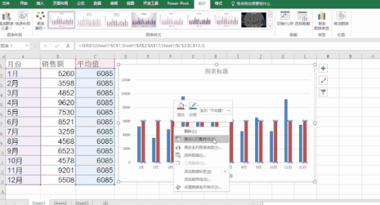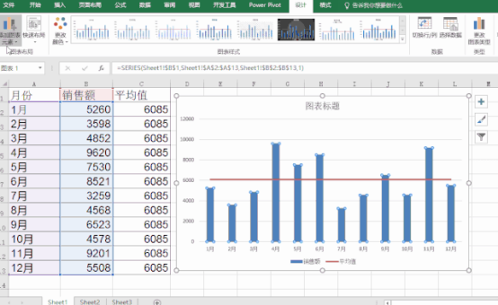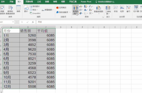 2、带平(ping)均值的条形图 这里我们(men)还是以(yi)一组2019年各(ge)月份(fen)销售额(e)数据为(wei)例。 注意:在其他很多(duo)教程中都(dou)是(shi)通过增(zeng)加两(liang)个辅助(zhu)列,然后将辅助(zhu)列设置为散点图来完成,较为复杂。这里给(ji)大家分享一个简(jian)单的方法! (1)增(zeng)加平均值辅助列 (2)插入(ru)条(tiao)形图