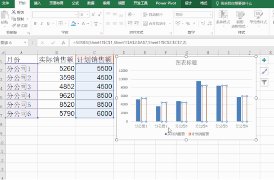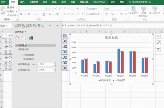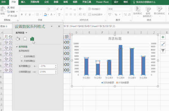 (3)将“计划完成”修改为次坐标(biao)轴(zhou)