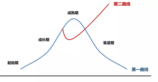 单一业务来说就是四个阶段: • 创业期(起始期):在业务起步的阶段,业务模式还不清晰,需要进行探索。 • 成长期:一旦业务模式清楚了变为现实,简称为变现。在实现变现后,进入了快速的复制阶段。总营收和客户会快速增长。 • 成熟期:这个时候业务的总营收或者客户数还在增长,但增速会比以前放缓。 • 衰退期:总营收或者客户数不增反降。 如果在不同的业务发展阶段里,这四个阶段,我们称之为第一曲线。业务发展的过程中,我们应该还要思考第二曲线。 回过头来看,就单一业务来说,各个阶段组织管控的重心应该聚焦在哪里?我们HR又该做些什么?