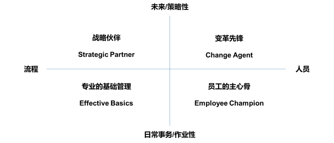 HR人力资源的4个战(zhan)略角色(se) 01 战(zhan)略伙伴(ban) Strategic Partner 行为:企业战略决(jue)策的参与者,提供(gong)基于战略的人力资源规划及系(xi)统解决(jue)方案(an) 结果:将人力资源纳入企业的战略(lve)与经(jing)营管理活动当中(zhong),使人力资源与企业战略(lve)相结合(he) 02 专业(ye)的基础管(guan)理(专家)Effective Basics 行为:运用专业知识和技能研究开发(fa)企业人力(li)(li)资源(yuan)产(chan)品与服务,为企业人力(li)(li)资源(yuan)问题的解决提供咨询 结果(guo):提高(gao)组织(zhi)人(ren)力(li)资源开发与(yu)管理(li)的有效性 03 员(yuan)工的(de)主心骨 Employee Champion 行为:与员(yuan)(yuan)工(gong)沟通,及时了解员(yuan)(yuan)工(gong)的需(xu)求,为员(yuan)(yuan)工(gong)及时提供支持 结(jie)果:提(ti)高员工(gong)满意度,增强(qiang)员工(gong)忠(zhong)诚感(gan) 04 变革先(xian)锋 Change Agent 行为(wei):参与变革与创新,组(zu)织变革(并购(gou)与重组(zu),组(zu)织裁员,业务(wu)流程再(zai)造(zao)等)过程中的人力资源管(guan)理(li)实践 结(jie)果:提高员工对组织(zhi)变(bian)革(ge)的适应能力(li),妥善处理(li)组织(zhi)变(bian)革(ge)过程中的各种人力(li)资源问题,推动(dong)组织(zhi)变(bian)革(ge)进程